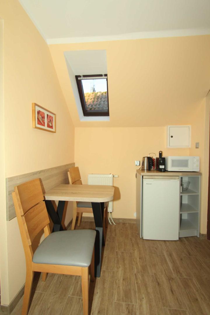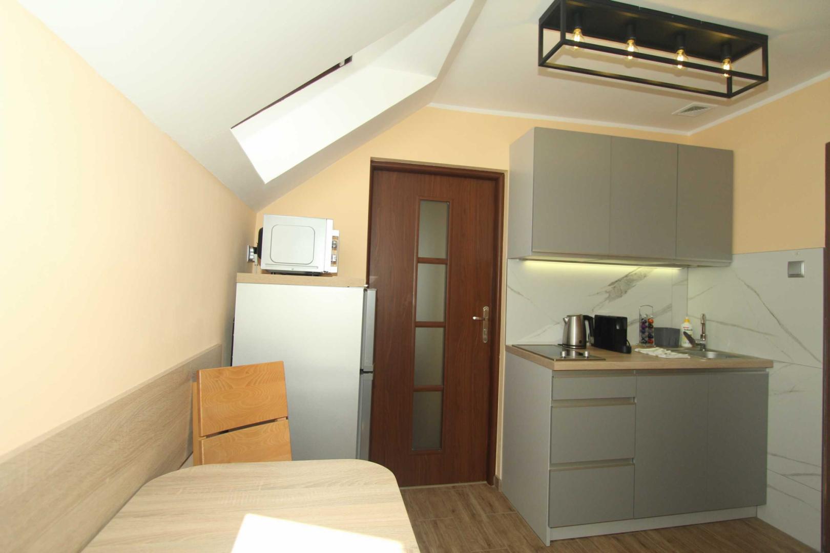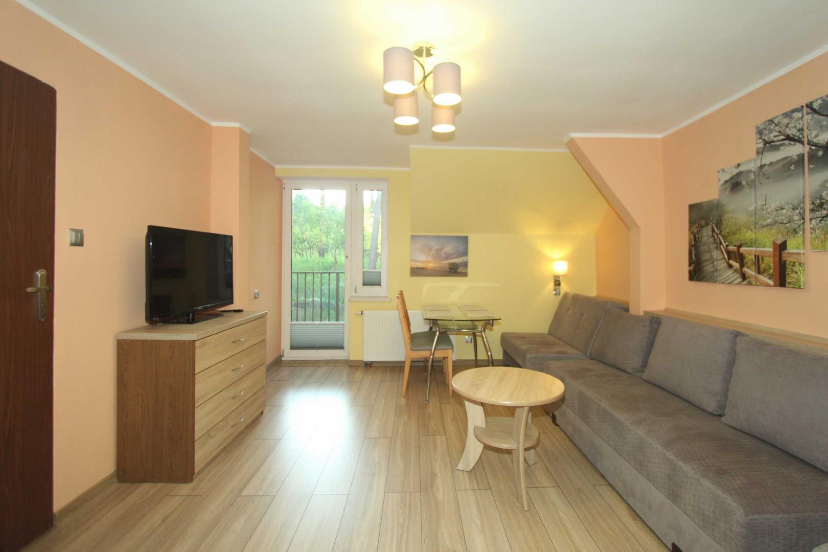 Studio 01 - pokoik z aneksem kuchennym. Do spania dwie rozkładane kanapy, tv, łazienka z prysznicem. Mogą zamieszkać tu dwie osoby dorosłe + 2 dzieci. W aneksie kuchennym lodówka, płytka grzewcza, mikrofalówka, naczynia. Parter.