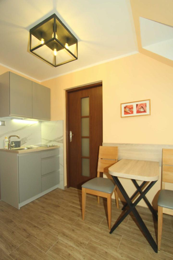 - kuchnia w pełni wyposażona, płyta ceramiczna 2 palniki, mikrofalówka, lodówka, czajnik, naczynia, sztućce